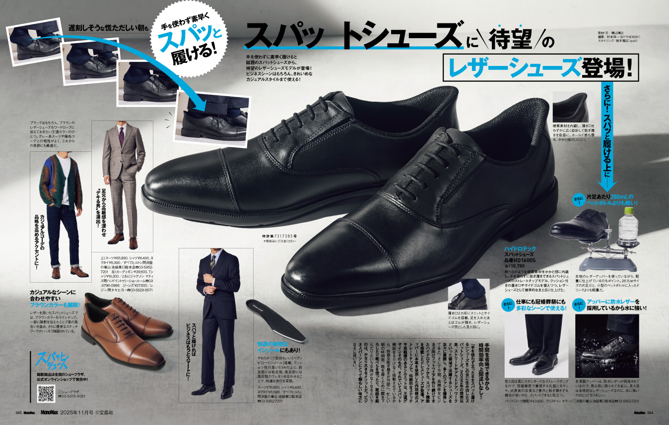 手を使わずに立ったままスパッと履ける!ハイドロテックのスパットシューズがモノ・トレンド情報誌「MonoMax」に登場!