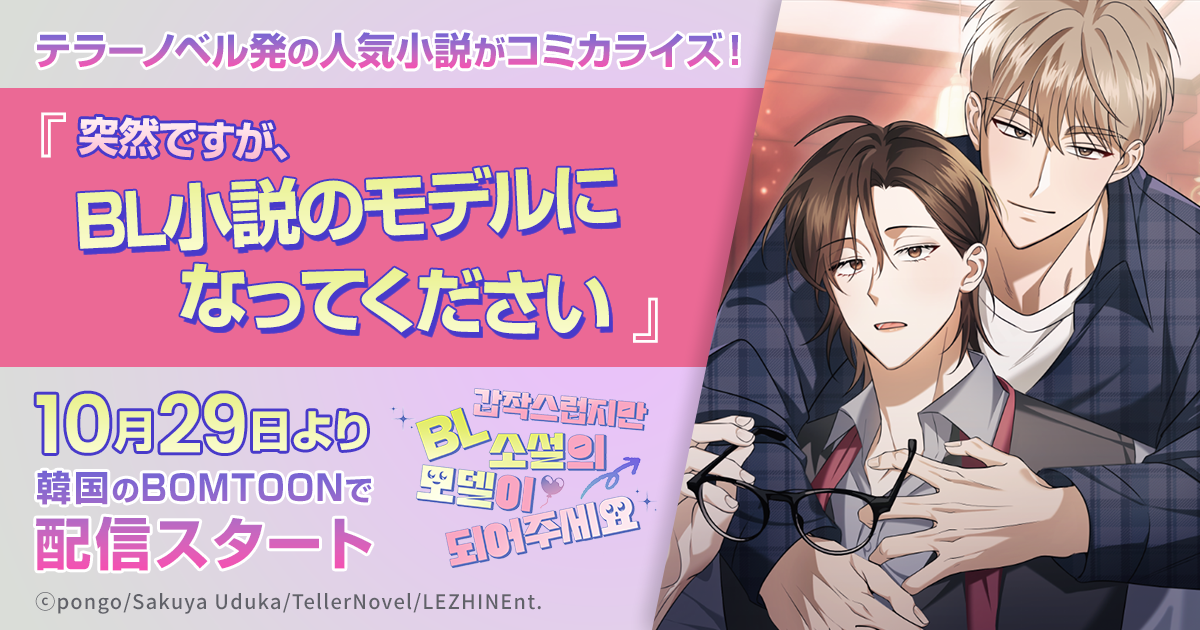 テラーノベル発の人気小説がコミカライズ!『突然ですが、BL小説のモデルになってください』が10月29日よりBOMTOONにて配信スタート