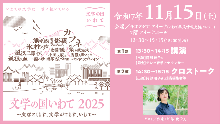 【文学の国いわて2025】本屋大賞受賞作『カフネ』阿部暁子さん講演会 11月15日(土) キオクシアアイーナ(いわて県民情報交流センター)にて開催!