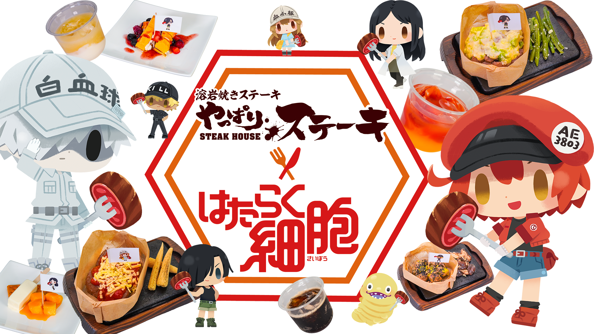 【コラボカフェ】やっぱりステーキとTVアニメ『はたらく細胞』とコラボ開始ここでしか味わえないメニュー&描き起こしイラストのグッズが期間限定で登場!