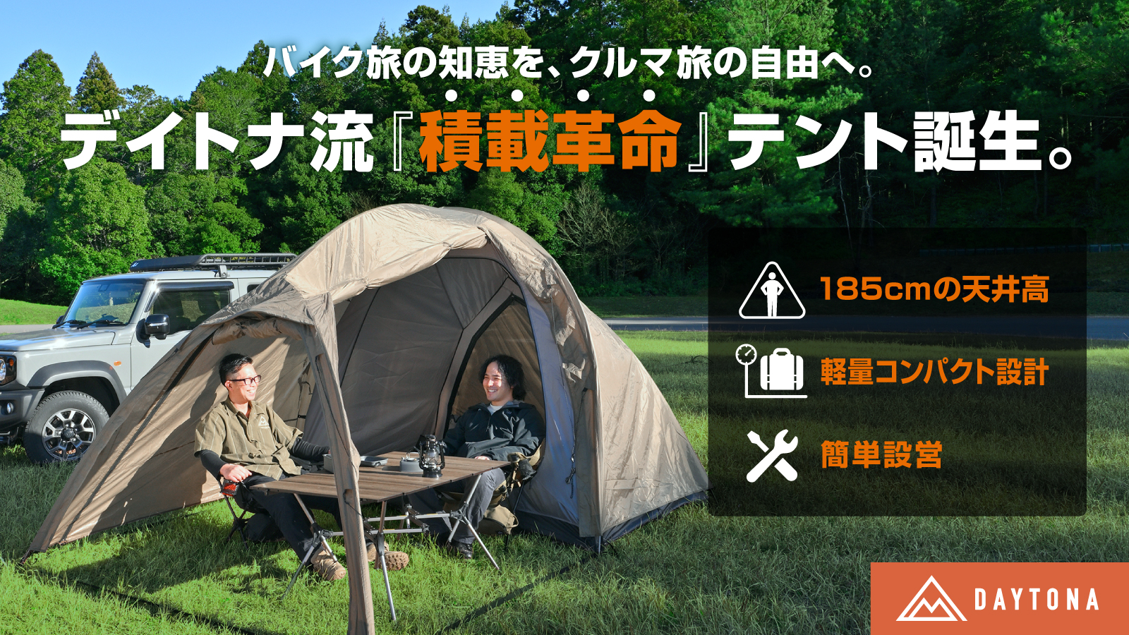 ツーリングテントの「マエヒロドーム」がオートキャンプ対応へ進化!かがまず動ける開放感を実現した新モデル誕生