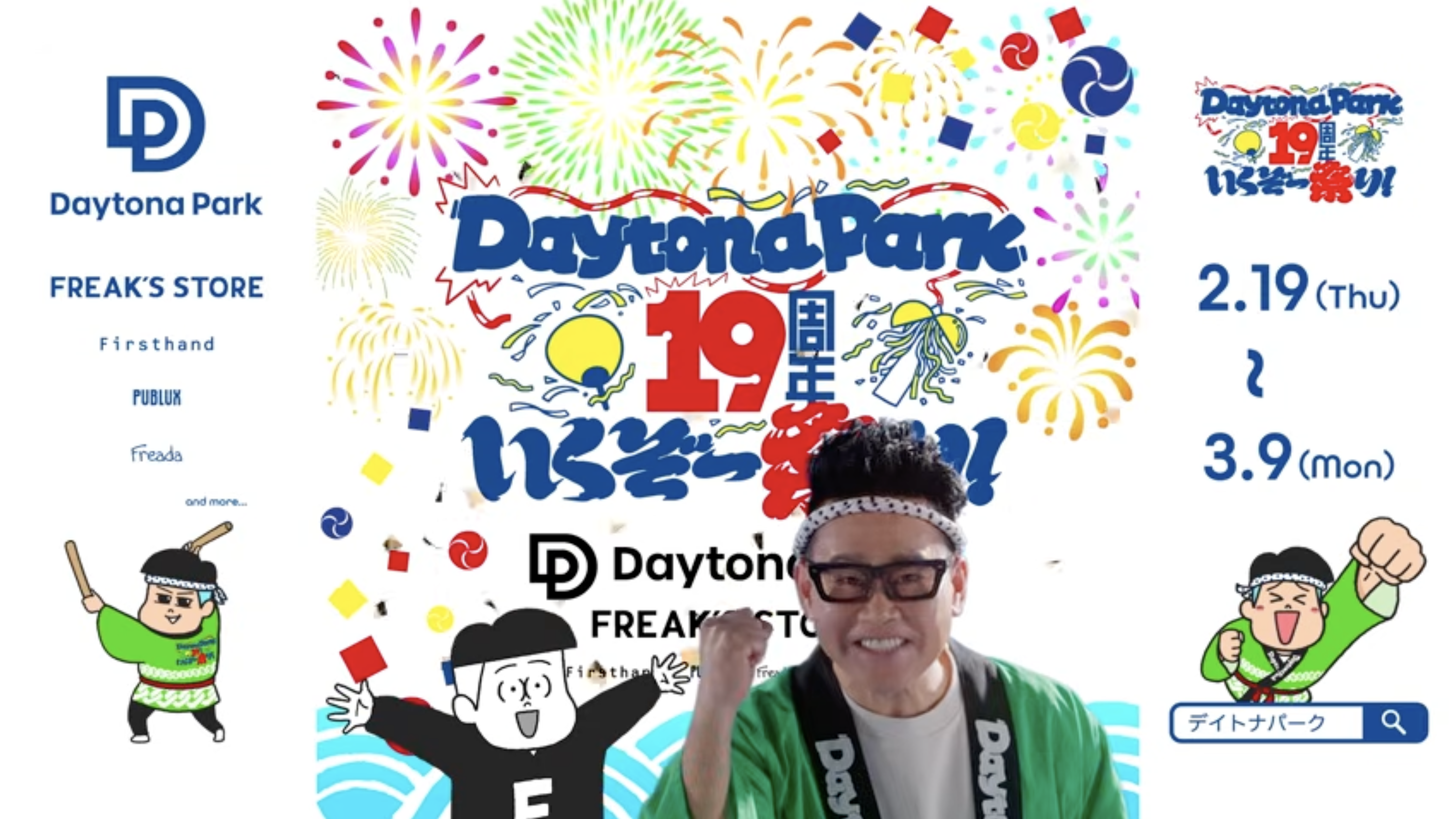お祭り男『宮川大輔』と盛り上げる! 【19周年いくぞー祭り!】で19日間ワクワク体験FREAK’S STORE公式オンラインストア「Daytona Park」にて、2月19日(木)よりキャンペーン開始