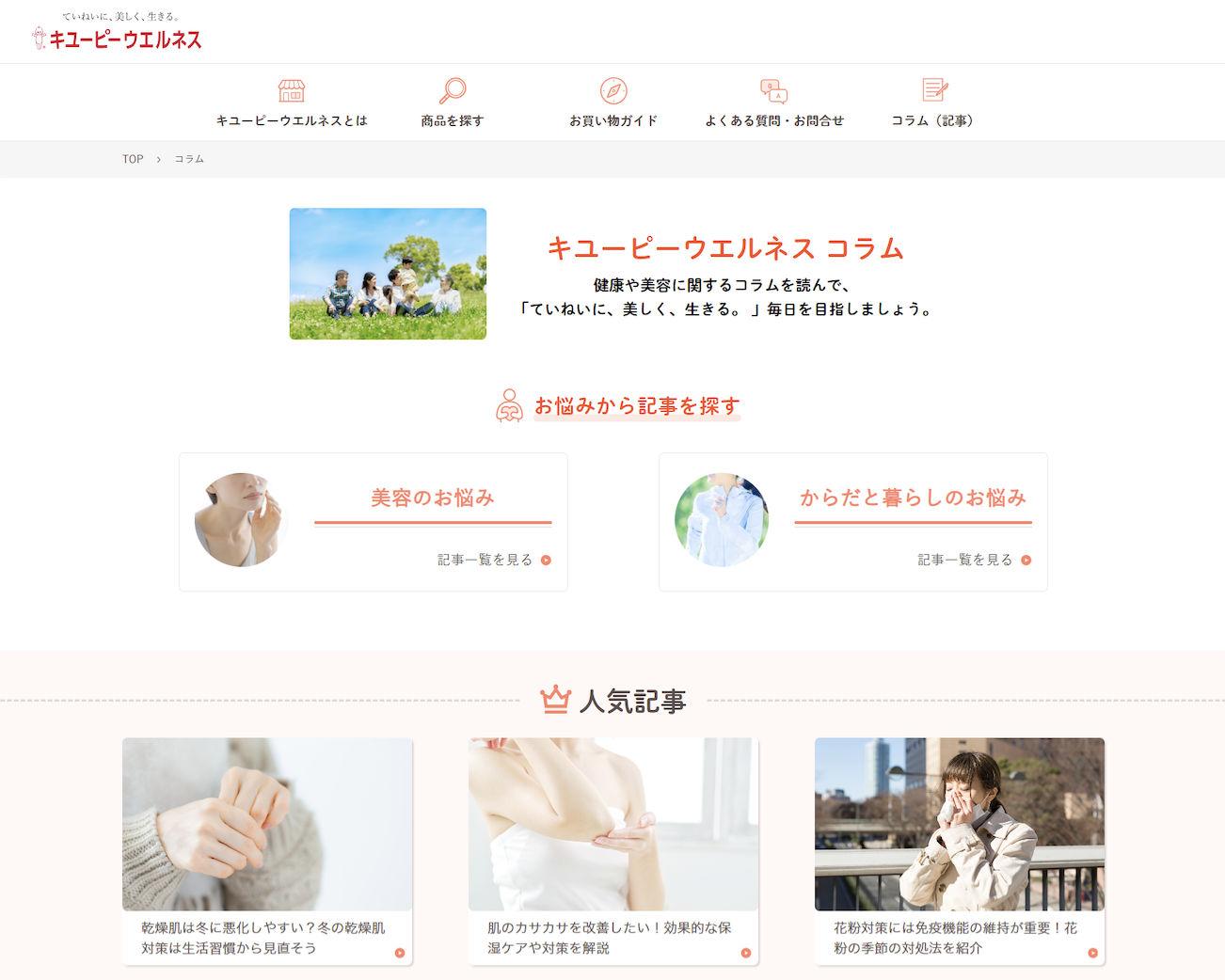キユーピーウエルネス コラムを新設、健康・美容情報を正しく発信