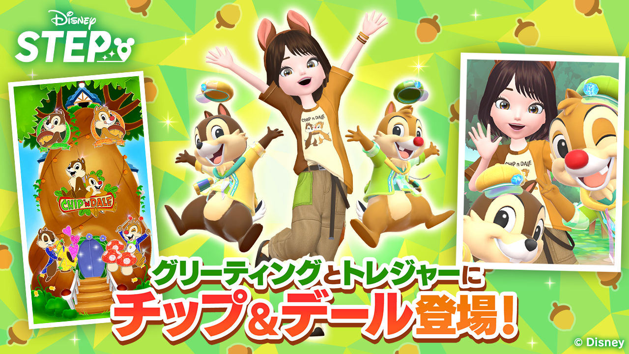 ディズニーのお散歩アプリ『Disney STEP(ディズニー ステップ)』人気キャラクター「チップ&デール」がハーフアニバーサリーを記念して登場!