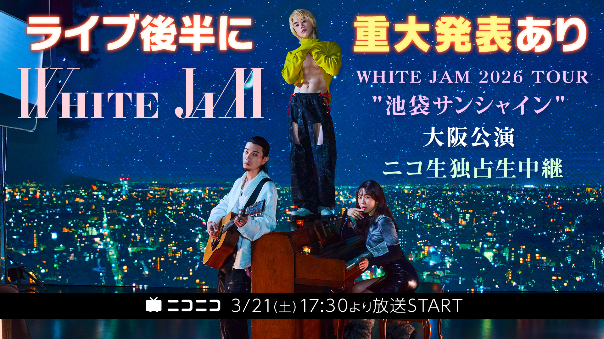 【3/21(土)17:30より】WHITE JAM 2026 TOUR "池袋サンシャイン" 大阪公演をニコニコ生放送で独占生中継が決定!【ライブ後半には史上最大の発表あり!】