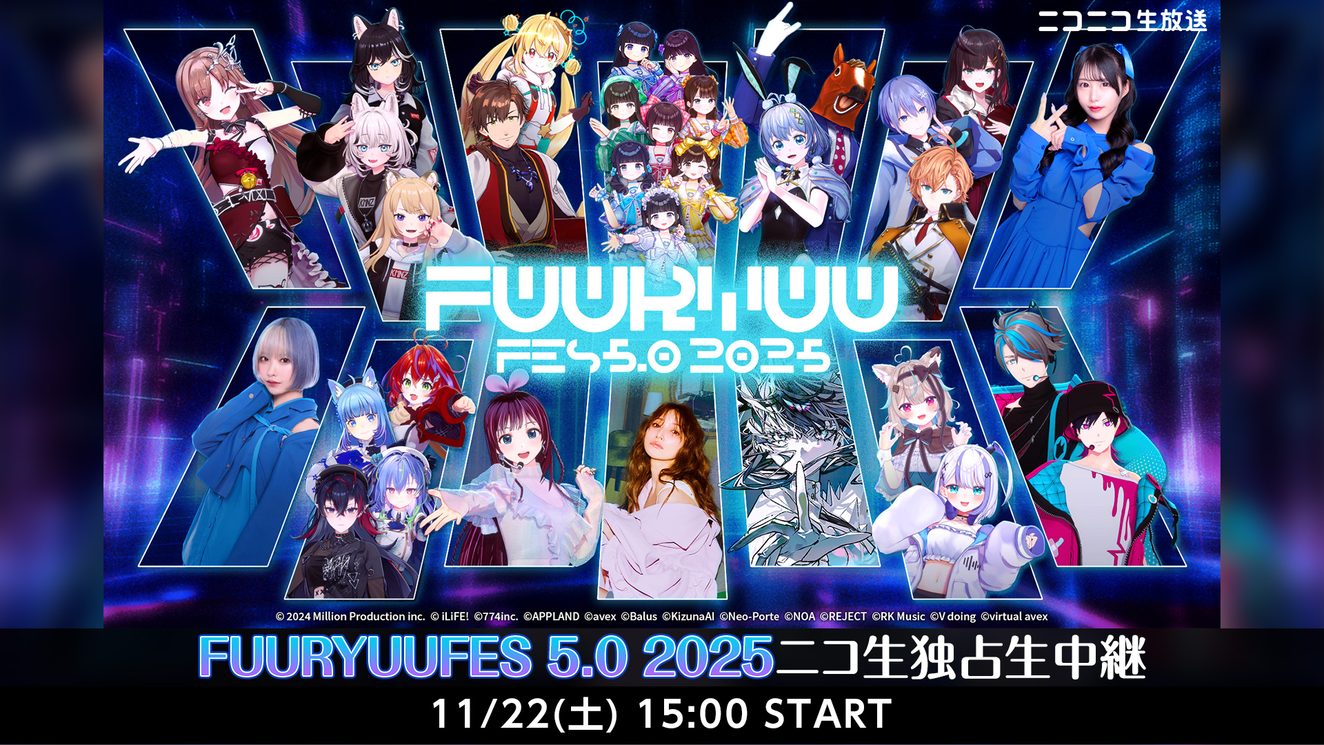 【KizunaAI/後藤真希/iLiFE!(バーチャル)/SIRO/渋谷ハル ほか】11月22日(土)15時~次世代フェス「FUURYUUFES 5.0 2025」 のニコ生独占生中継が決定!