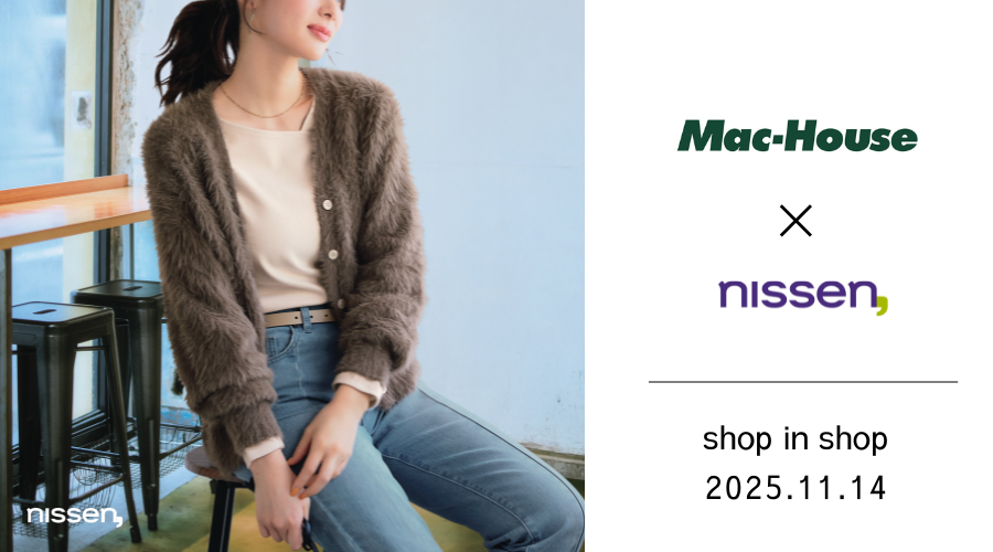11月14日(金)より、全国のマックハウス3店舗にてニッセンのショップインショップを展開。32アイテム、Sから10Lサイズまで展開のヒット商品「ゆるフィットワイドパンツ」も登場。