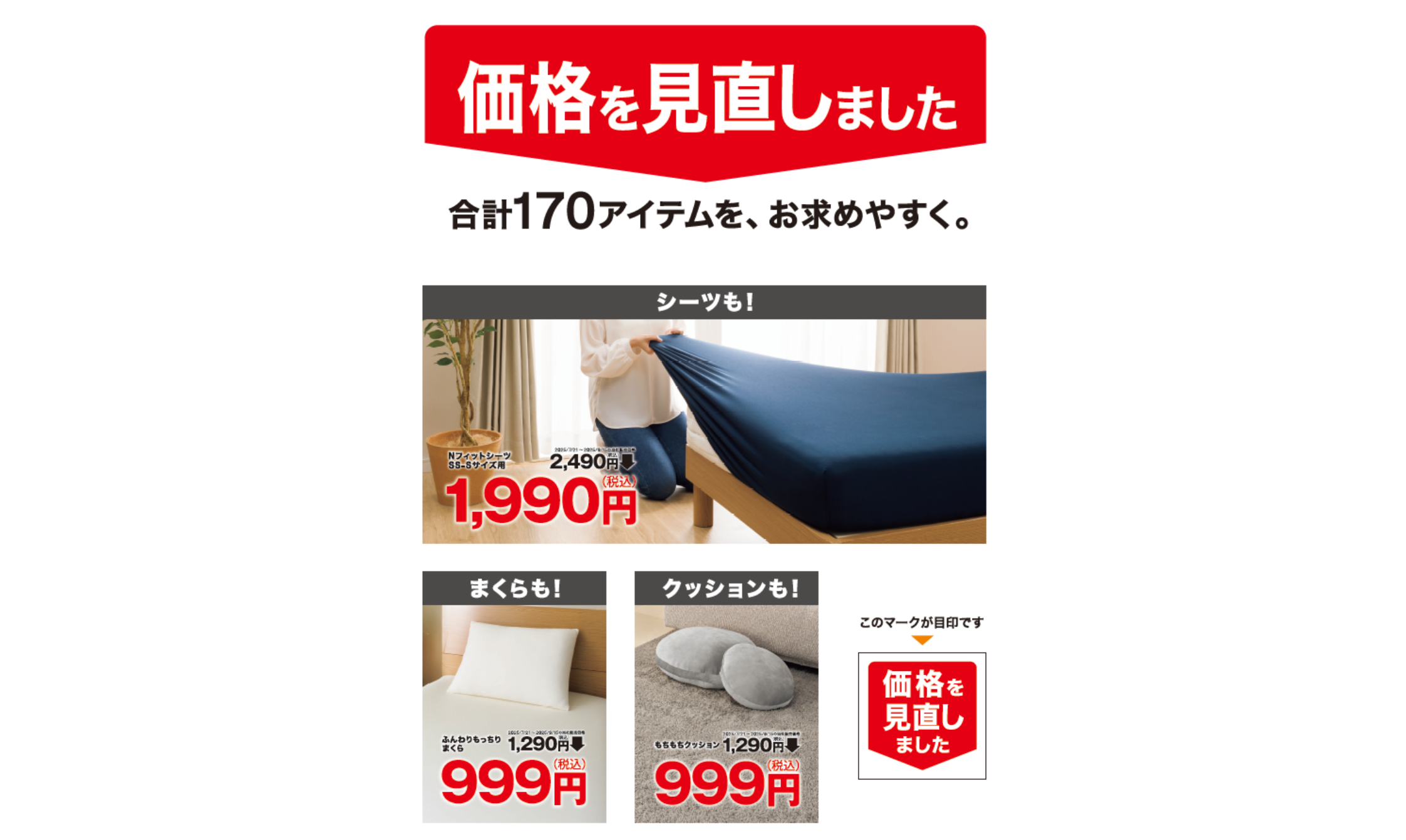 ニトリの定番商品 170アイテムの価格を見直しました。