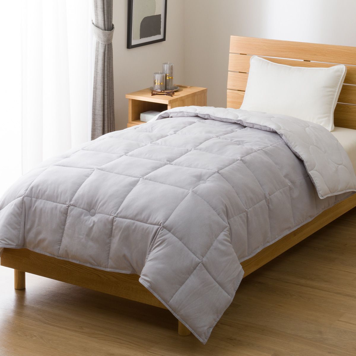 これ1枚で年中快適!保温面と爽快面、2種類のふとんが持つ機能を1つに合体させた新しい商品「ちょうど良い湿度調整掛ふとん」を発売しました。