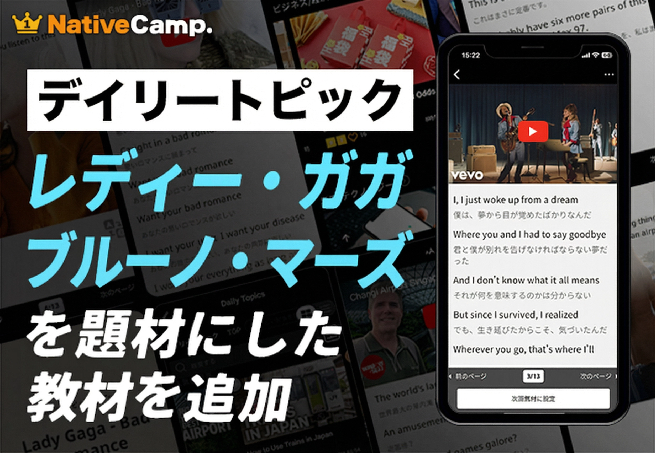【英会話レッスン回数無制限】ネイティブキャンプ 世界の様々な動画を使った人気の教材「デイリートピック」に“レディー・ガガ&ブルーノ・マーズ”を扱った教材を新たに追加