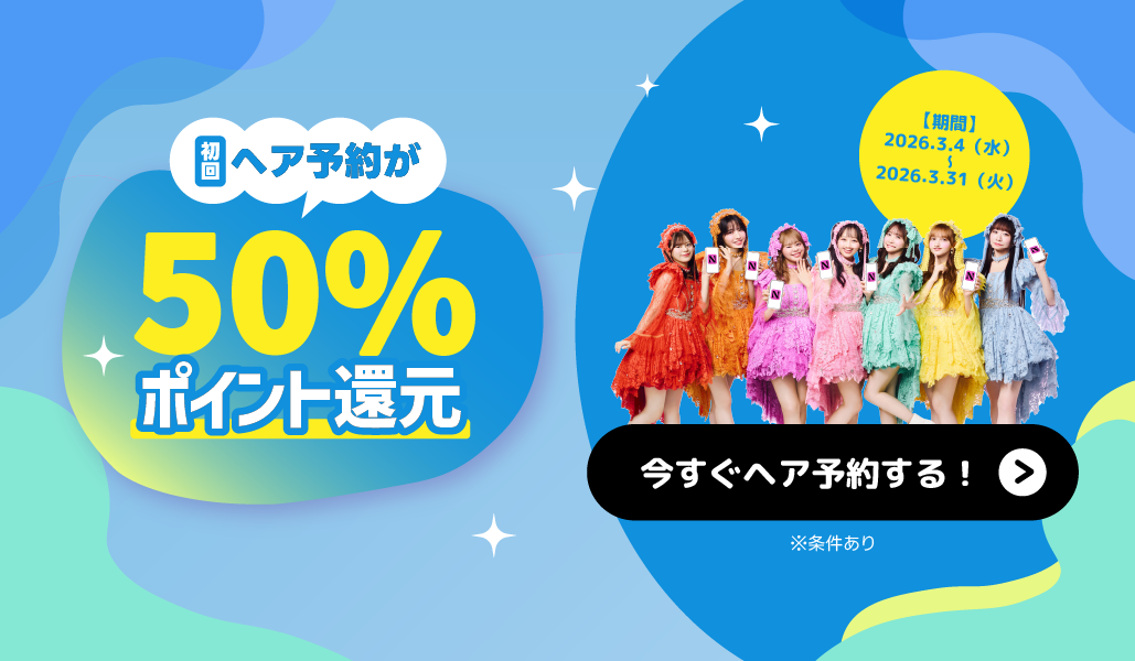 【ご好評につき第2弾!】ヘア予約もネイリーがお得!最大5,000円分ポイントバックで、春のスタイルチェンジが実質半額に