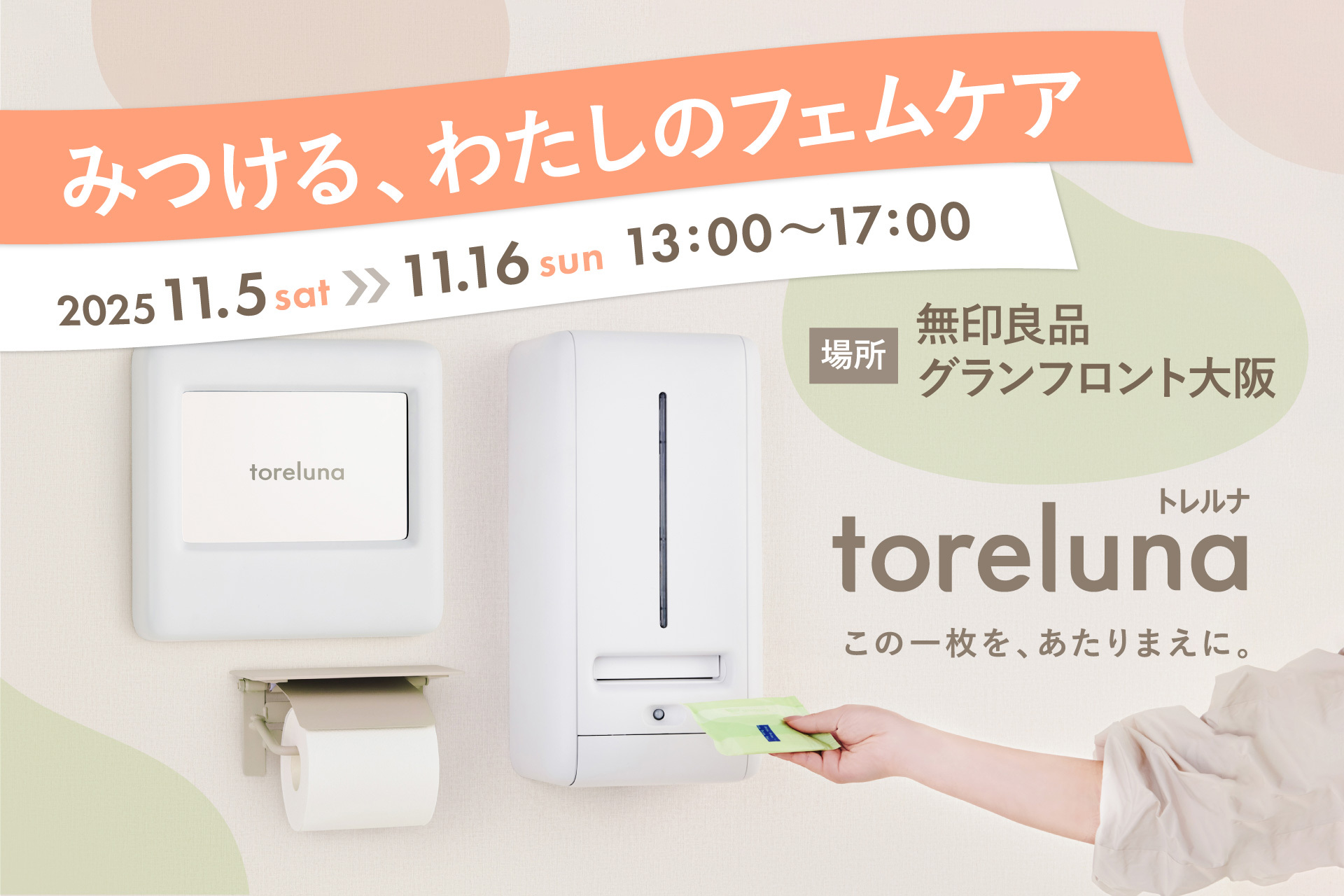 トイレの個室で生理用ナプキンを無料で受け取れる「トレルナ」無印良品 グランフロント大阪で開催『みつける、わたしのフェムケア』に出展PR TIMES トレンド