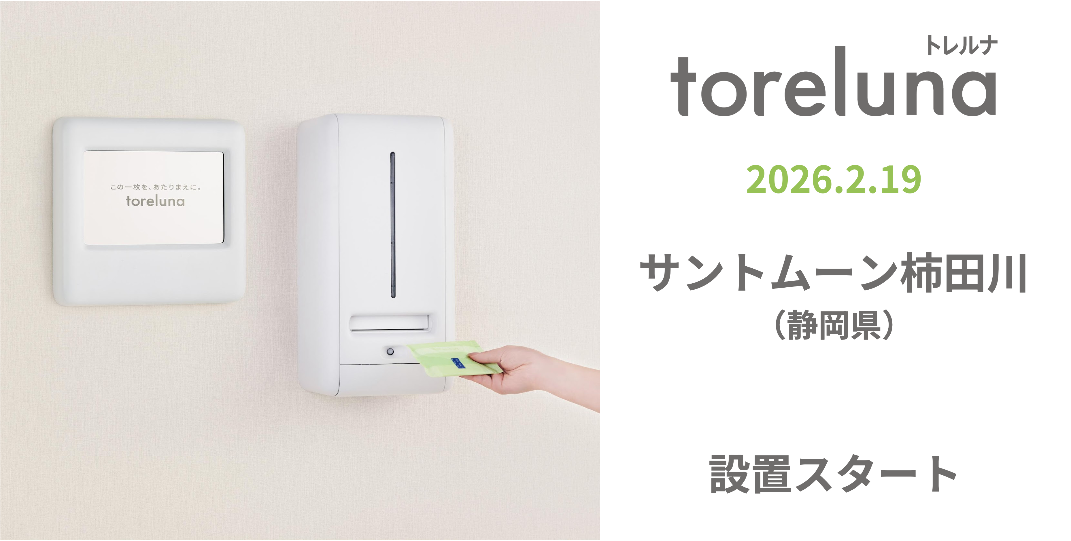 トイレの個室で生理用ナプキンが無料で受け取れる「トレルナ」サントムーン柿田川へ設置