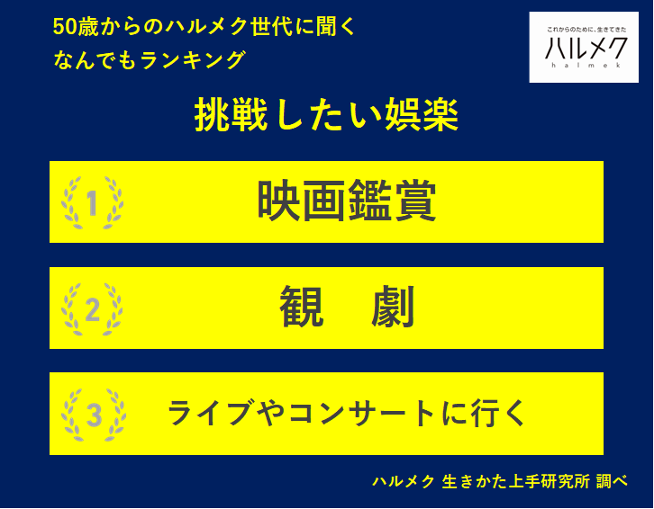 【50歳からのハルメク世代に聞く なんでもランキング】50歳以上の女性が選ぶ「挑戦したい娯楽(遊び・エンタメ)」