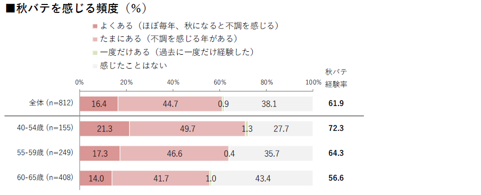 【HALMEK up×生きかた上手研究所 共同調査】62%の女性が「秋バテを経験」したことがあると回答。40~54歳は72%に達し深刻化