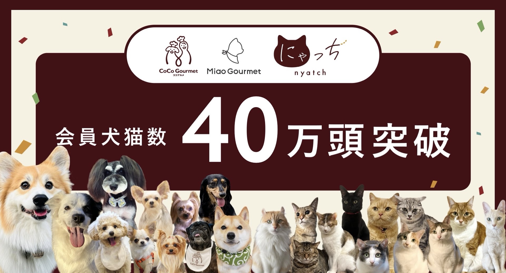 ココグルメ・ミャオグルメの会員犬猫数が40万頭を突破!愛猫向け無添加ピューレ「にゃっち」好調で猫会員は216%増。