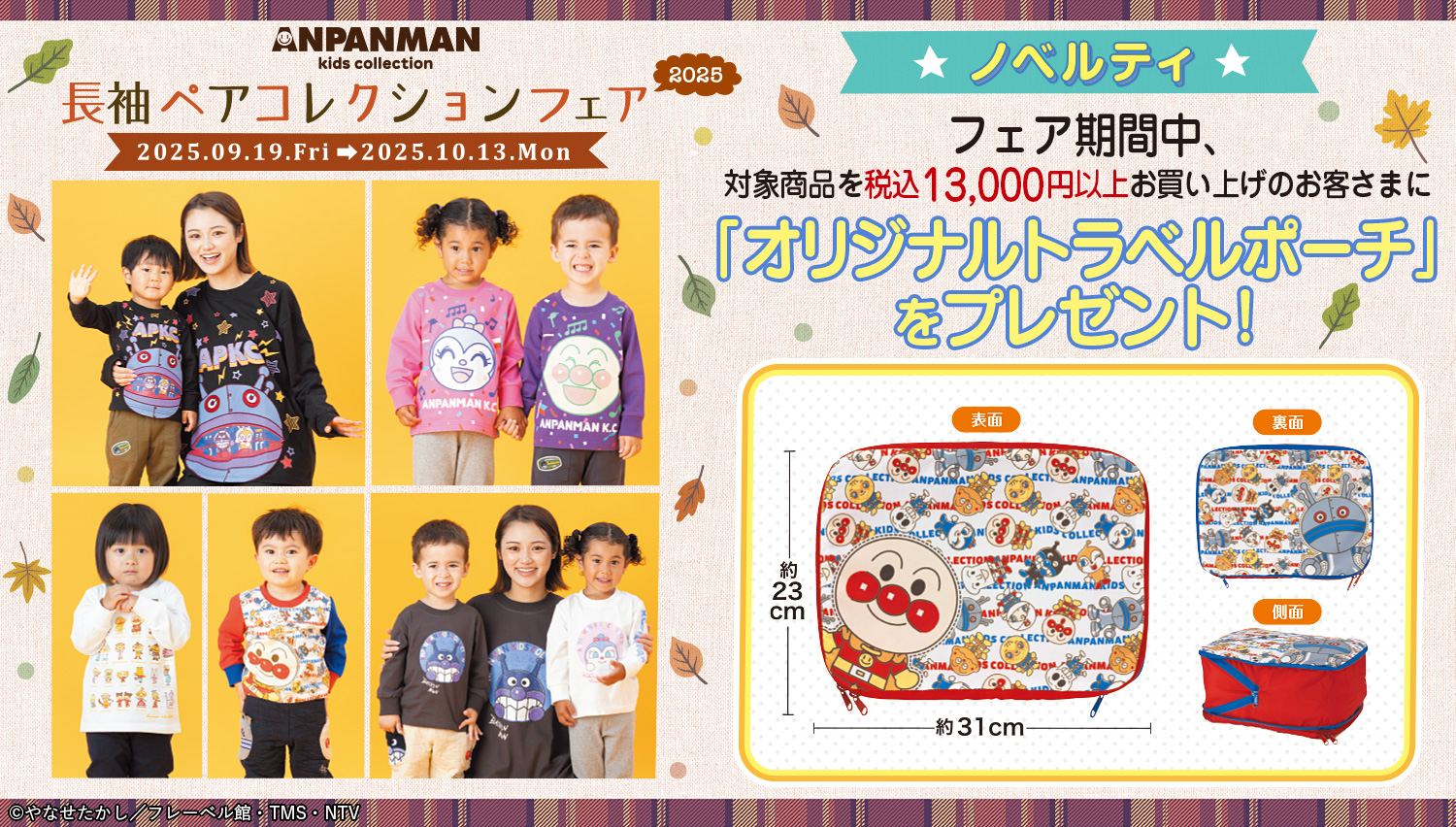 ばいきんまんとコキンちゃんがひょっこり覗いた可愛らしいデザインやだだんだんの大きなアップリケがインパクト抜群のデザインなど親子お揃いで着られる長袖ペアコレクションが新登場!