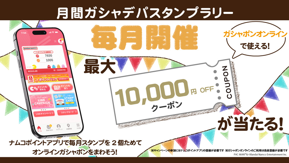 最大1万円分のガシャポンオンラインで使えるクーポンが当たる!ガシャポンのデパート「月間ガシャデパスタンプラリー」を開催!!