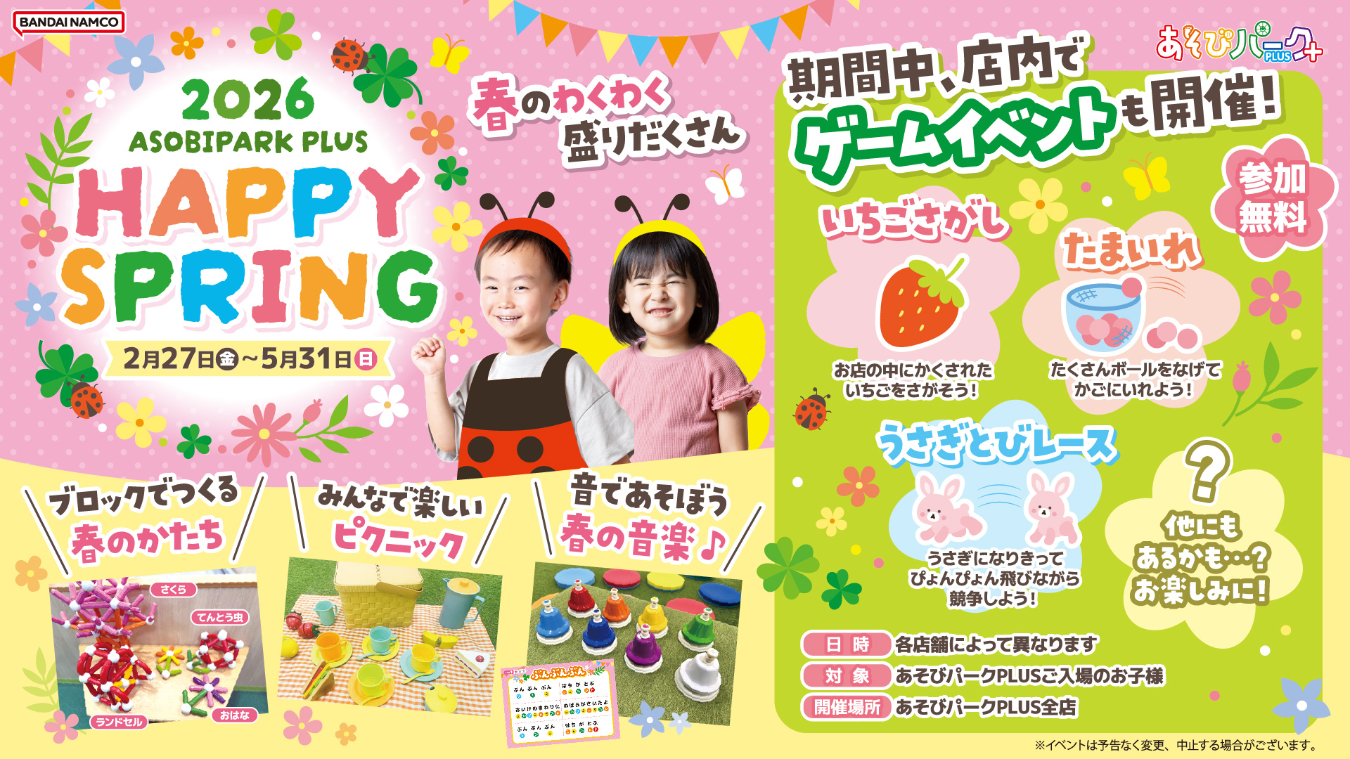 春のわくわく盛りだくさん!親子で春の思い出を作ろう 2月27日(金)から「あそびパークPLUS」で『HAPPY SPRING』開催!