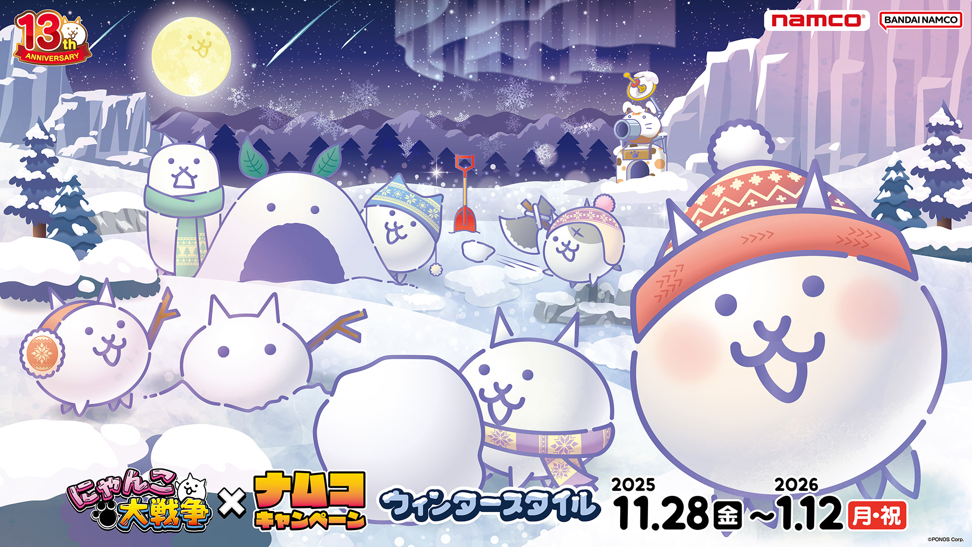 サービス開始13周年を記念して、オリジナルテーマでのコラボキャンペーン! にゃんこ大戦争×ナムコキャンペーン ウィンタースタイル