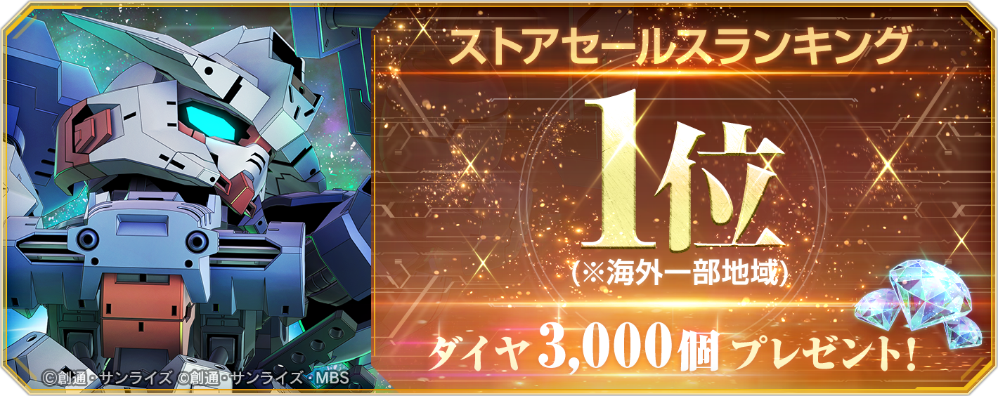 『SDガンダム ジージェネレーション エターナル』海外一部地域でのストアセールスランキング1位達成を記念し、ダイヤ3,000個(ガシャ10回分)を全員へプレゼント!