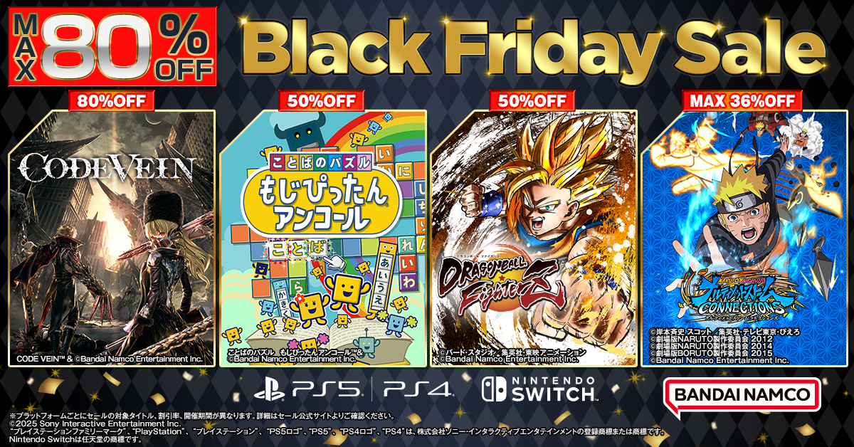 バンダイナムコエンターテインメント「Black Friday Sale」 開催!最大80%OFFに加え、PS Storeで4タイトルが初セール!