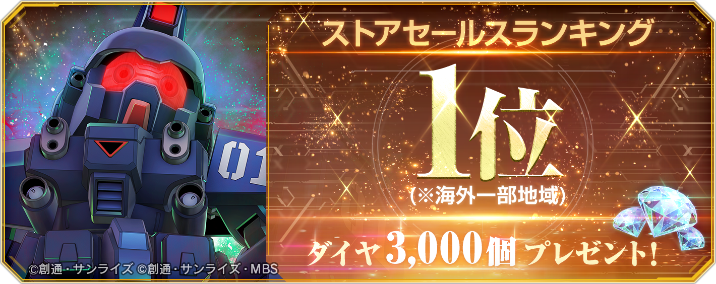 『SDガンダム ジージェネレーション エターナル』海外一部地域でのストアセールスランキング1位達成を記念し、ダイヤ3,000個(ガシャ10回分)を全員へプレゼント!