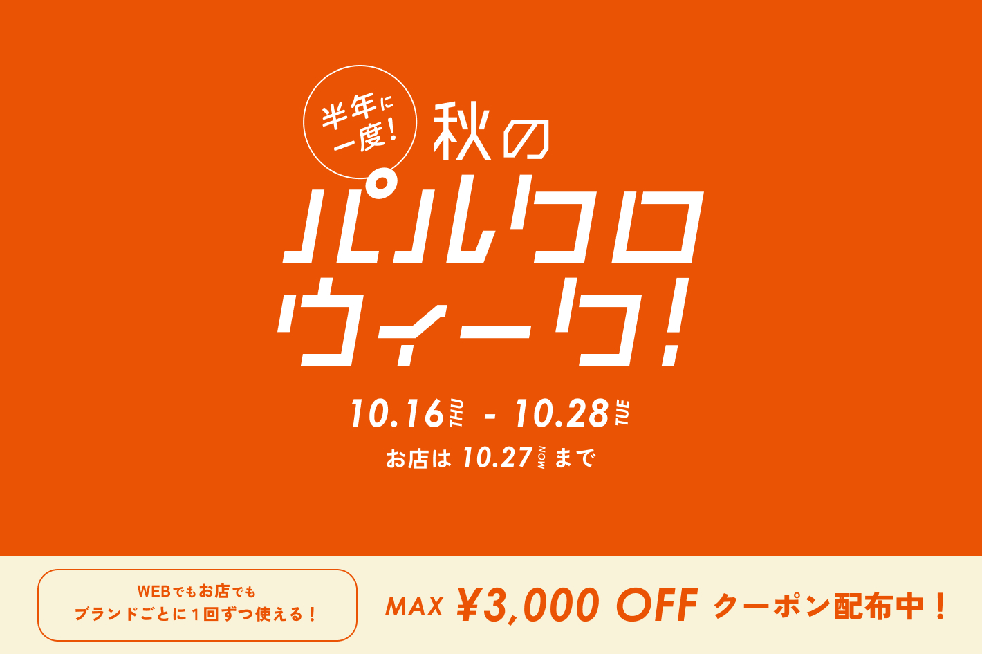 半年に一度!秋のパルクロウィーク開催【2025年10月16日(木)~ 10月28日(火)】