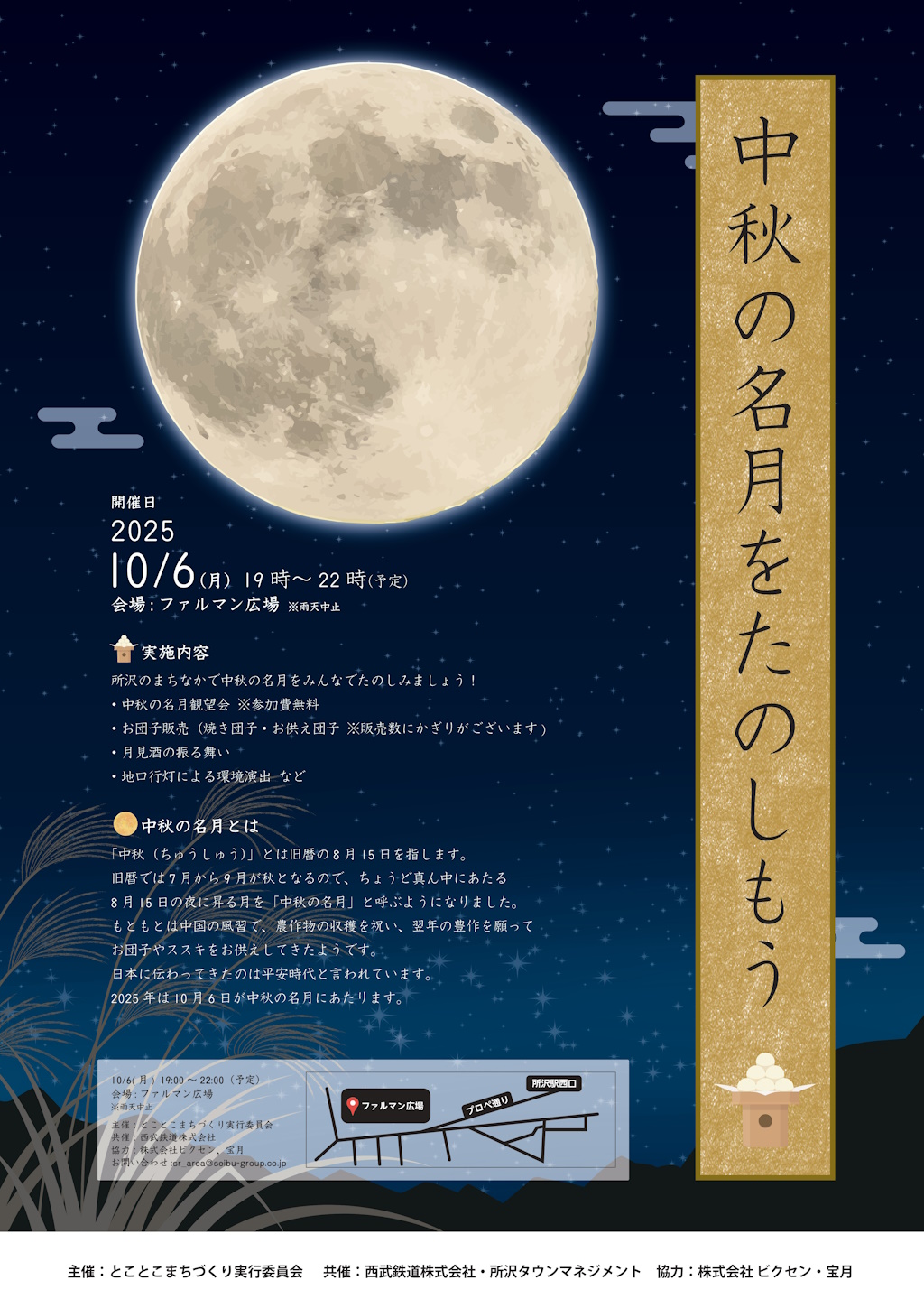 10月6日(月)は中秋の名月! 地元所沢のイベント「中秋の名月を楽しもう!」にて、中秋の名月観望会を実施