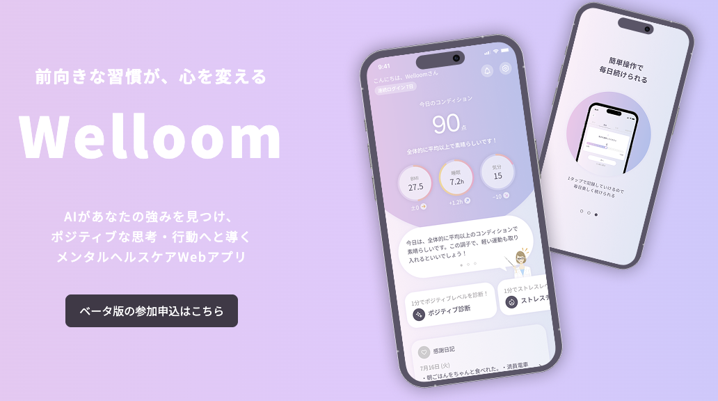 AI×ポジティブ認知行動療法によるメンタルヘルスケアアプリ「Welloom」ベータ版リリース