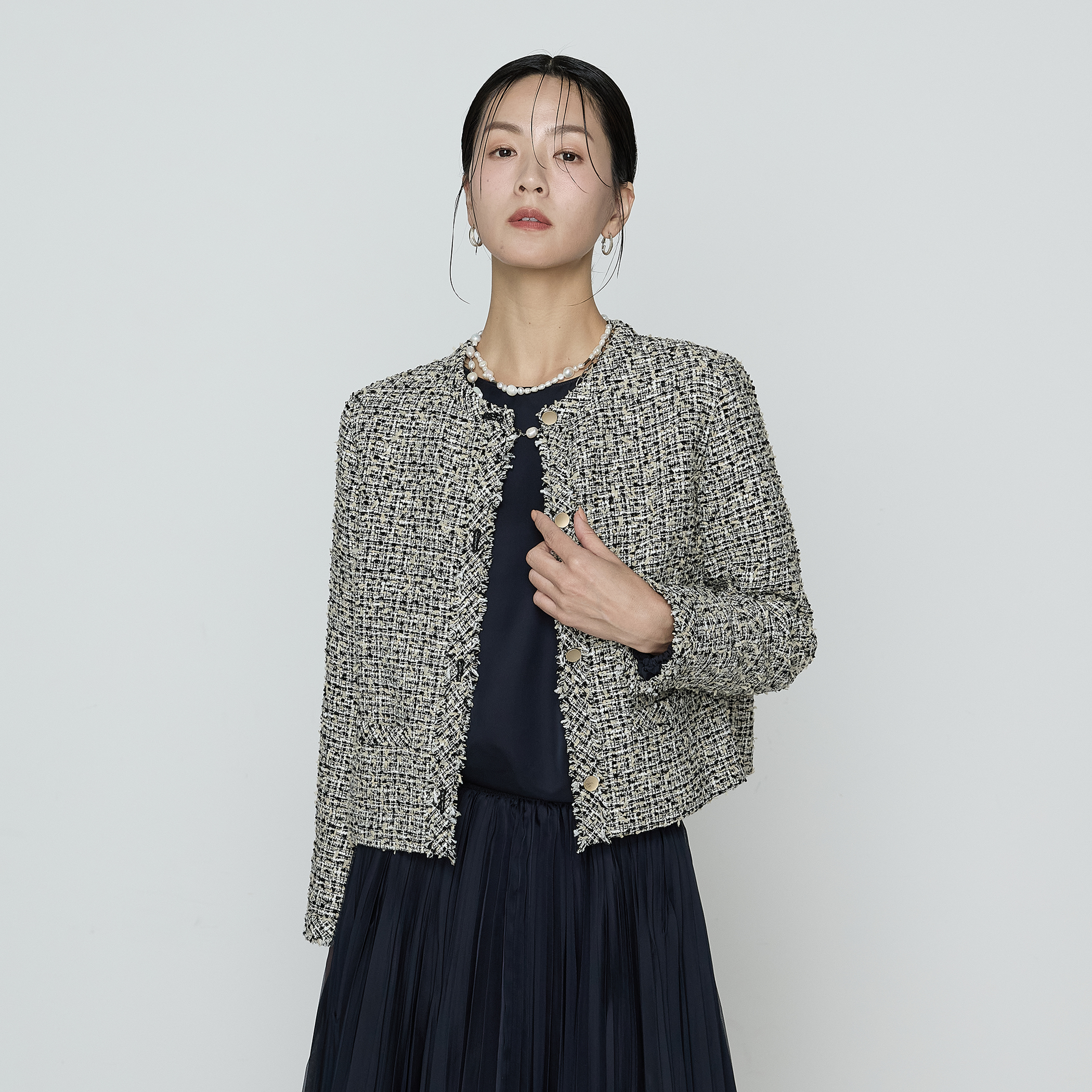 尾州で生まれた“セレモニーツイード”が新登場「K.T KIYOKO TAKASE」4種の意匠糸で織り上げた、上品で華やぐノーカラージャケット