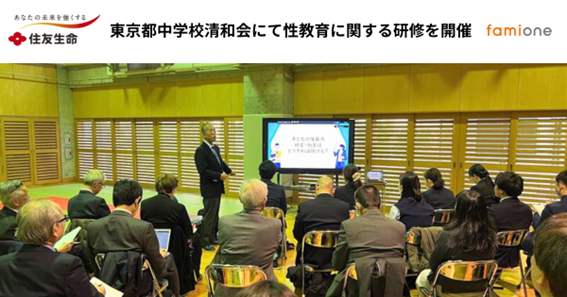 住友生命とファミワンの共創プロジェクトの一環として、東京都中学校清和会にて性教育に関する研修を開催