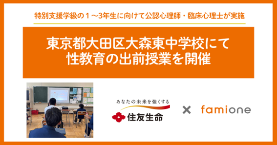 住友生命とファミワンの共創プロジェクトの一環として、東京都大田区立大森東中学校の特別支援学級の児童へ性教育の出前授業を開催