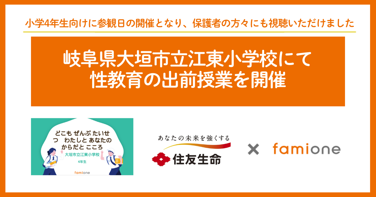 住友生命とファミワンの共創プロジェクトの一環として、岐阜県大垣市立江東小学校にて性教育の出前授業を開催