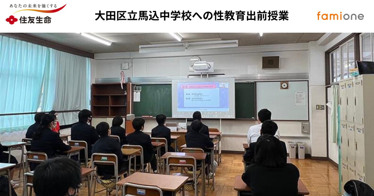 住友生命とファミワンの共創プロジェクトの一環として、大田区立馬込中学校にて性教育の出前授業を開催