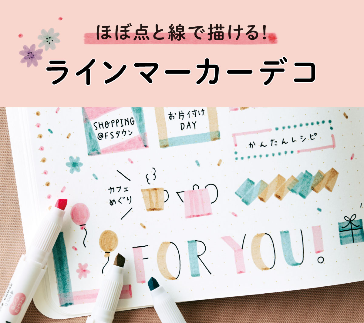 絵心不要! ラインマーカーで手帳やカードをおしゃれにデコ。点と線で280種のアレンジができる「ラインマーカーデコを120%楽しむセット」が、フェリシモ「ミニツク(R)」から新登場