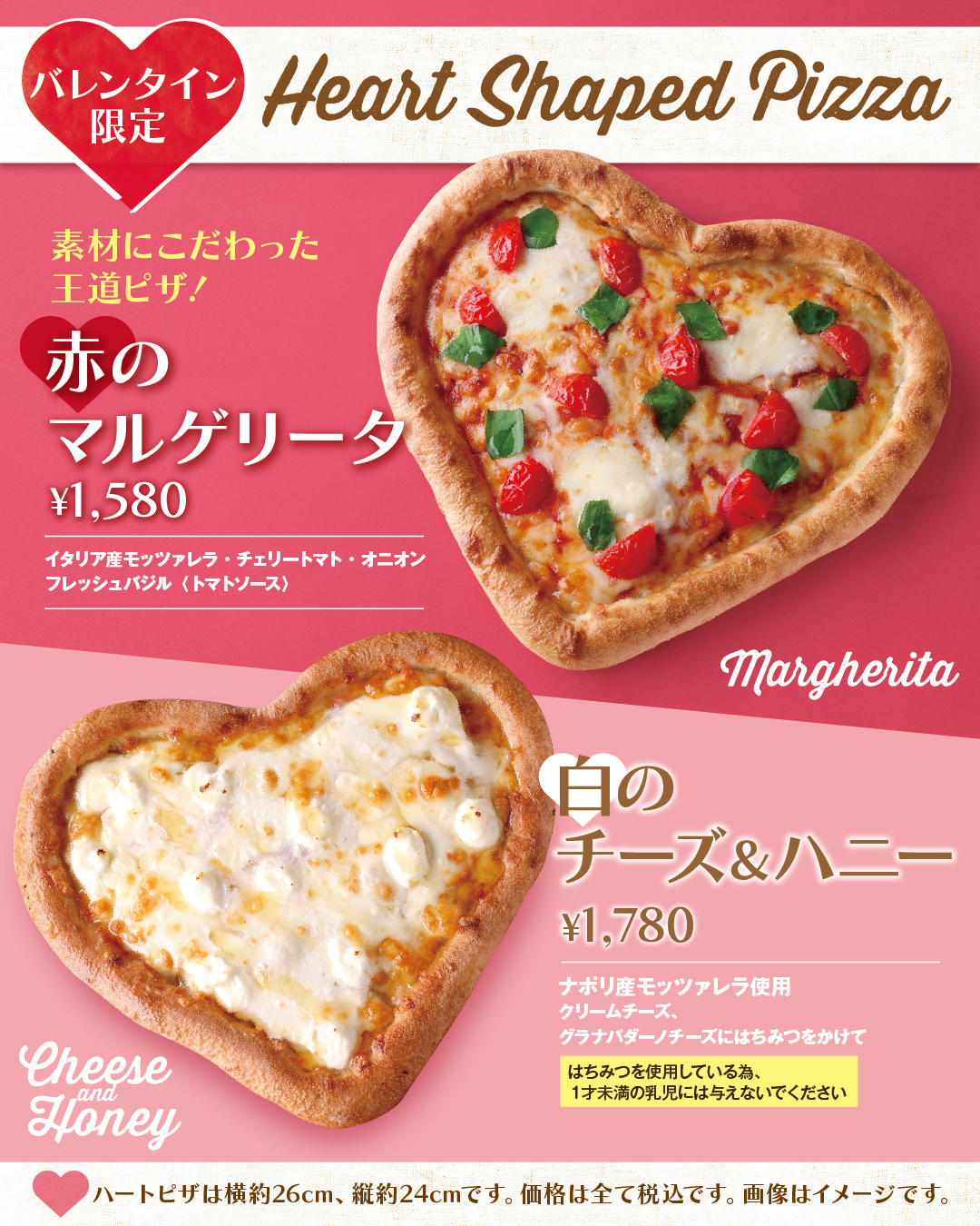 バレンタインにぴったりなTO THE HERBSの赤と白のハートのピザ(ハート)『赤のマルゲリータ』と『白のチーズ&ハニー』が登場