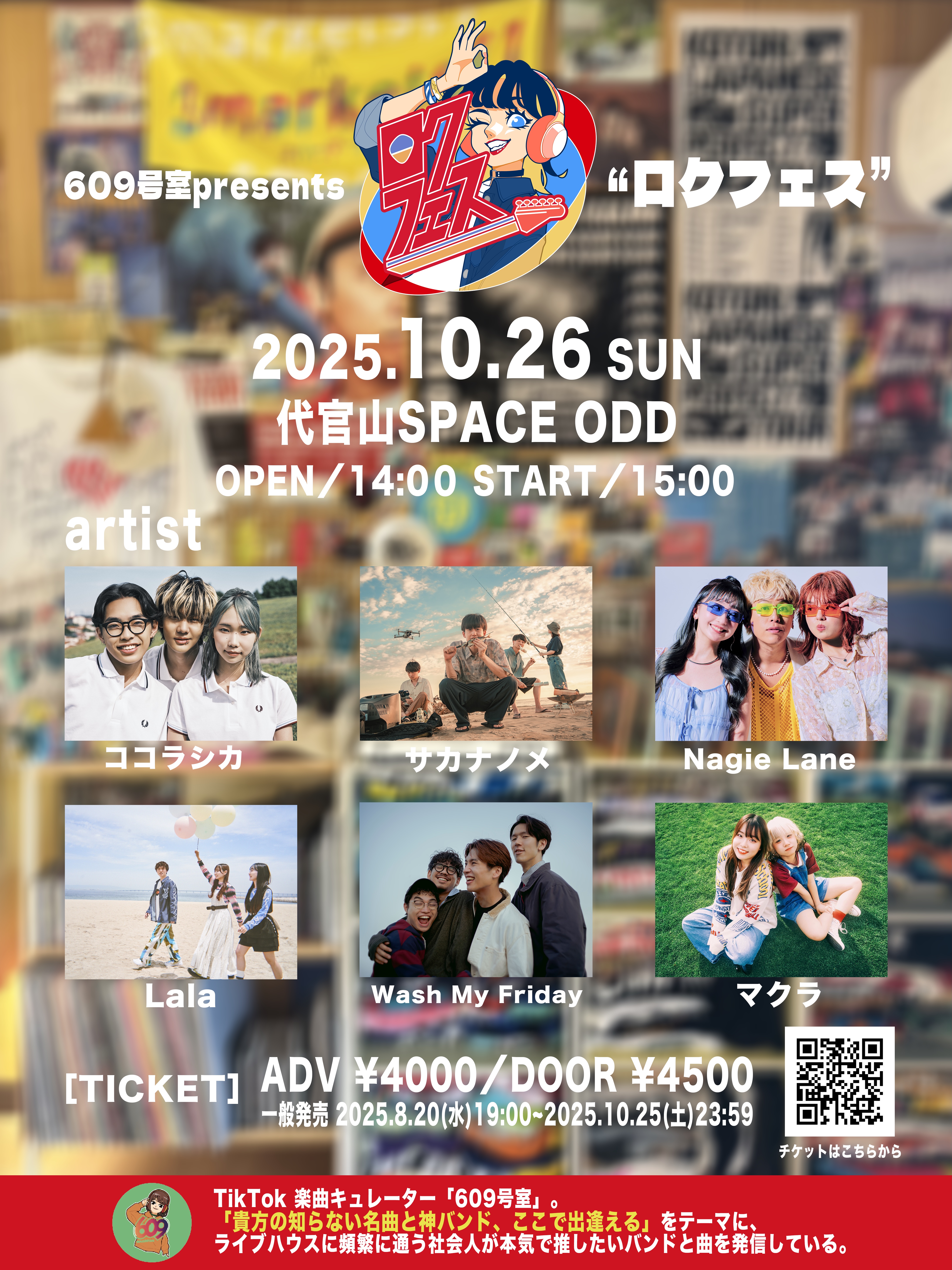 TikTokキュレーター 609号室主催イベント『ロクフェス』全ラインナップが解禁!新進気鋭のアーティスト6組が渋谷に集う!
