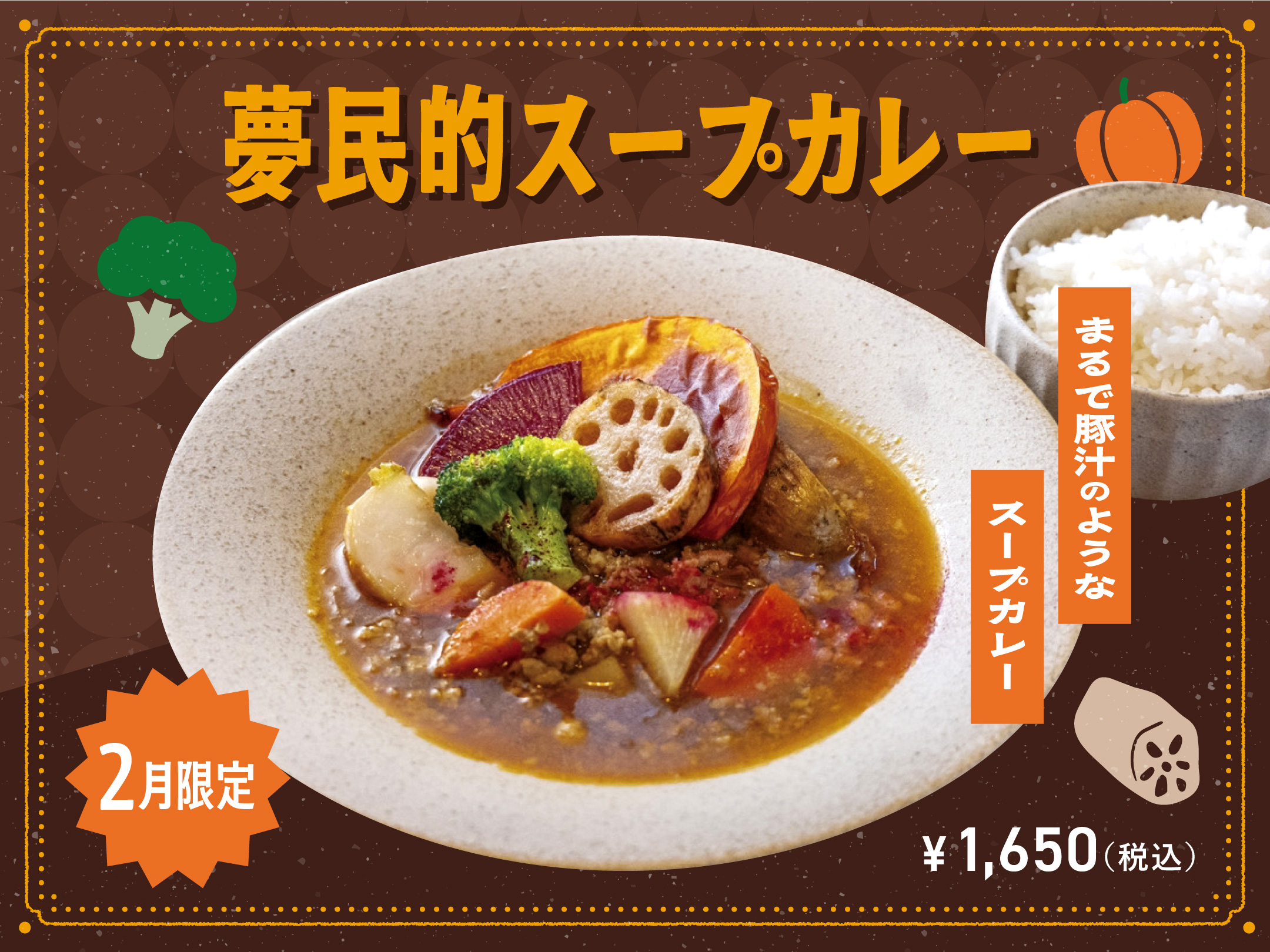 【2月季節限定カレー】Spice and Vegetable 夢民から、寒い季節にぴったり!まるで豚汁のような夢民流の新「スープカレー」が登場。