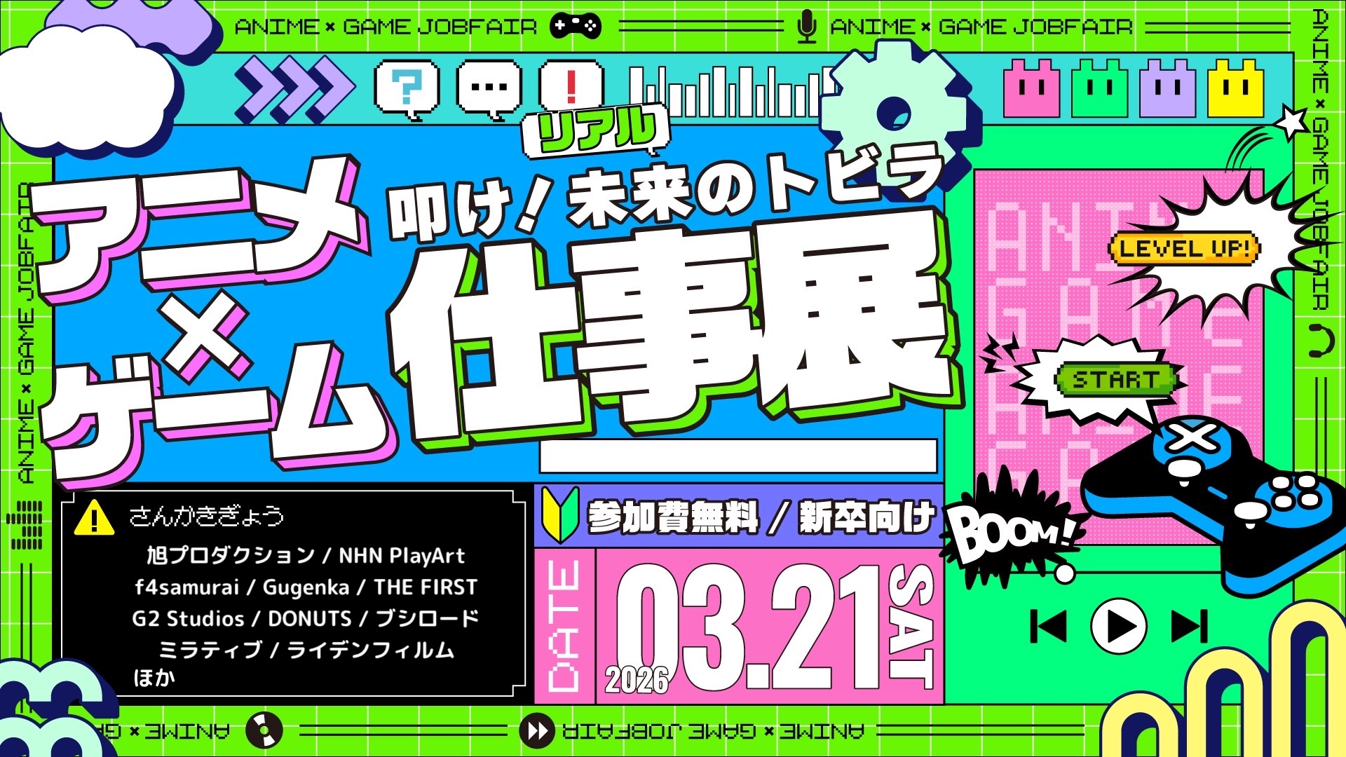 人事担当者と直接話せる!アニメ・ゲーム業界の「仕事のリアル」が分かる!学生向けエンタメ業界就活イベント「アニメ・ゲーム仕事展」2026年3月21日(土)開催決定!