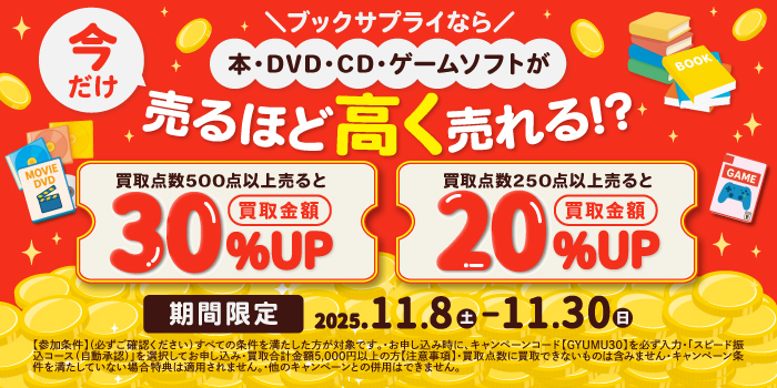 買取金額300円アップ!ブックサプライ「秋の読書週間キャンペーン」開催