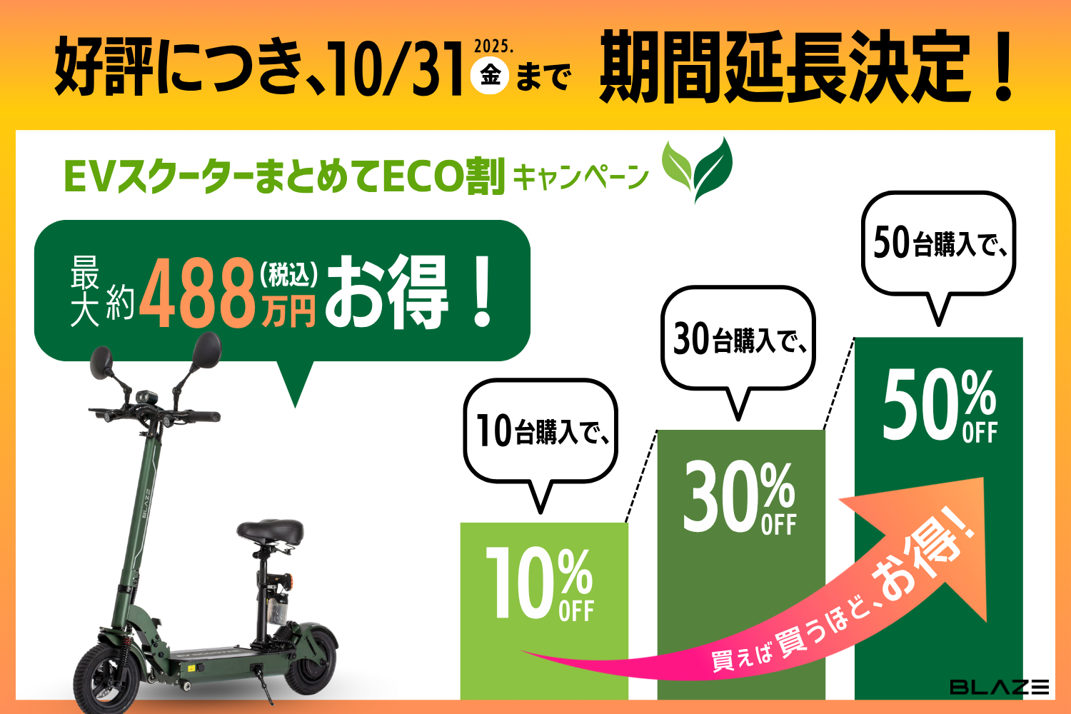 【延長決定!】(株)ブレイズが「EVスクーターまとめてECO割キャンペーン」を実施中!
