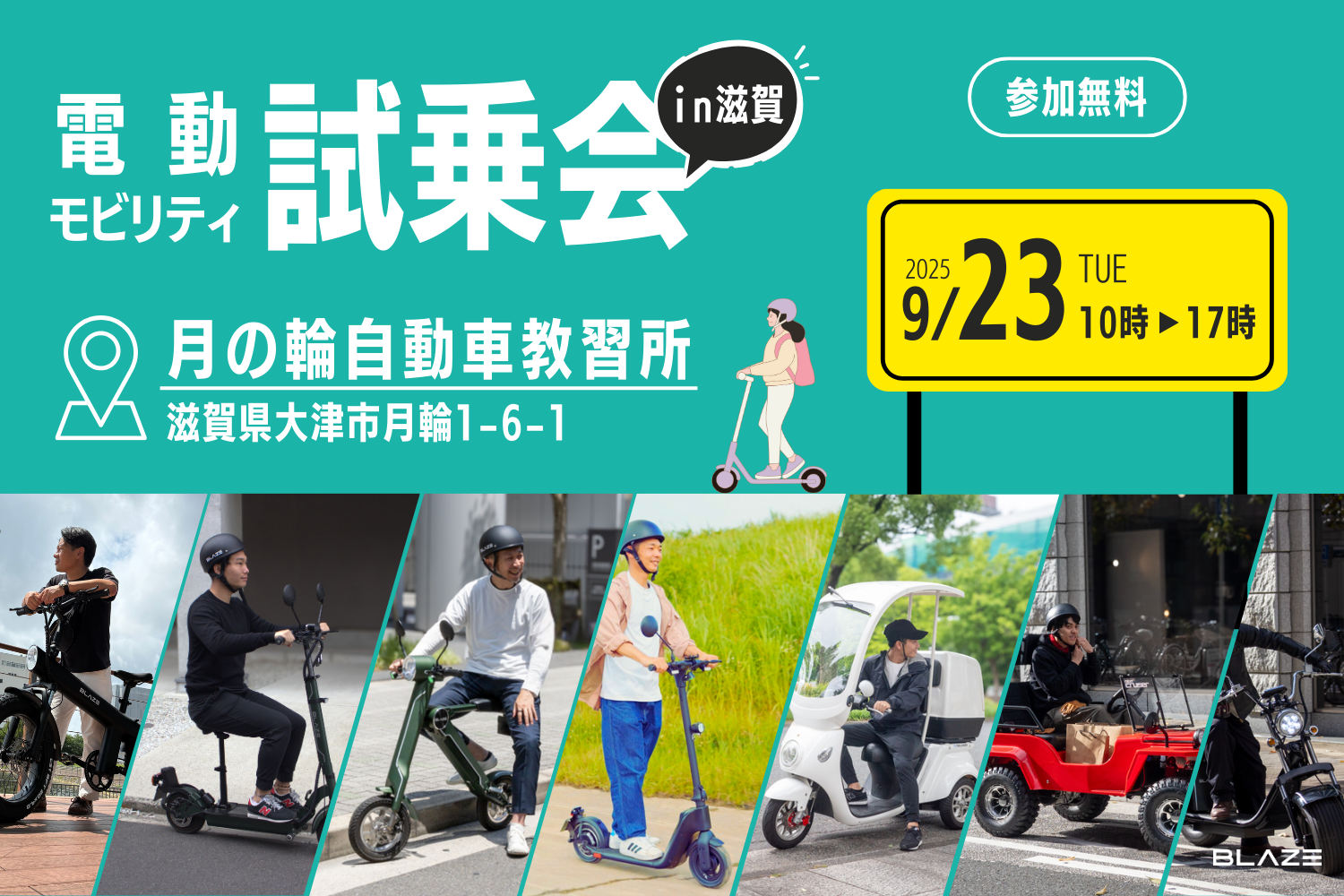 【実際の走行環境で試せる】(株)ブレイズの電動モビリティが「月の輪自動車教習所」で開かれる試乗会に登場!