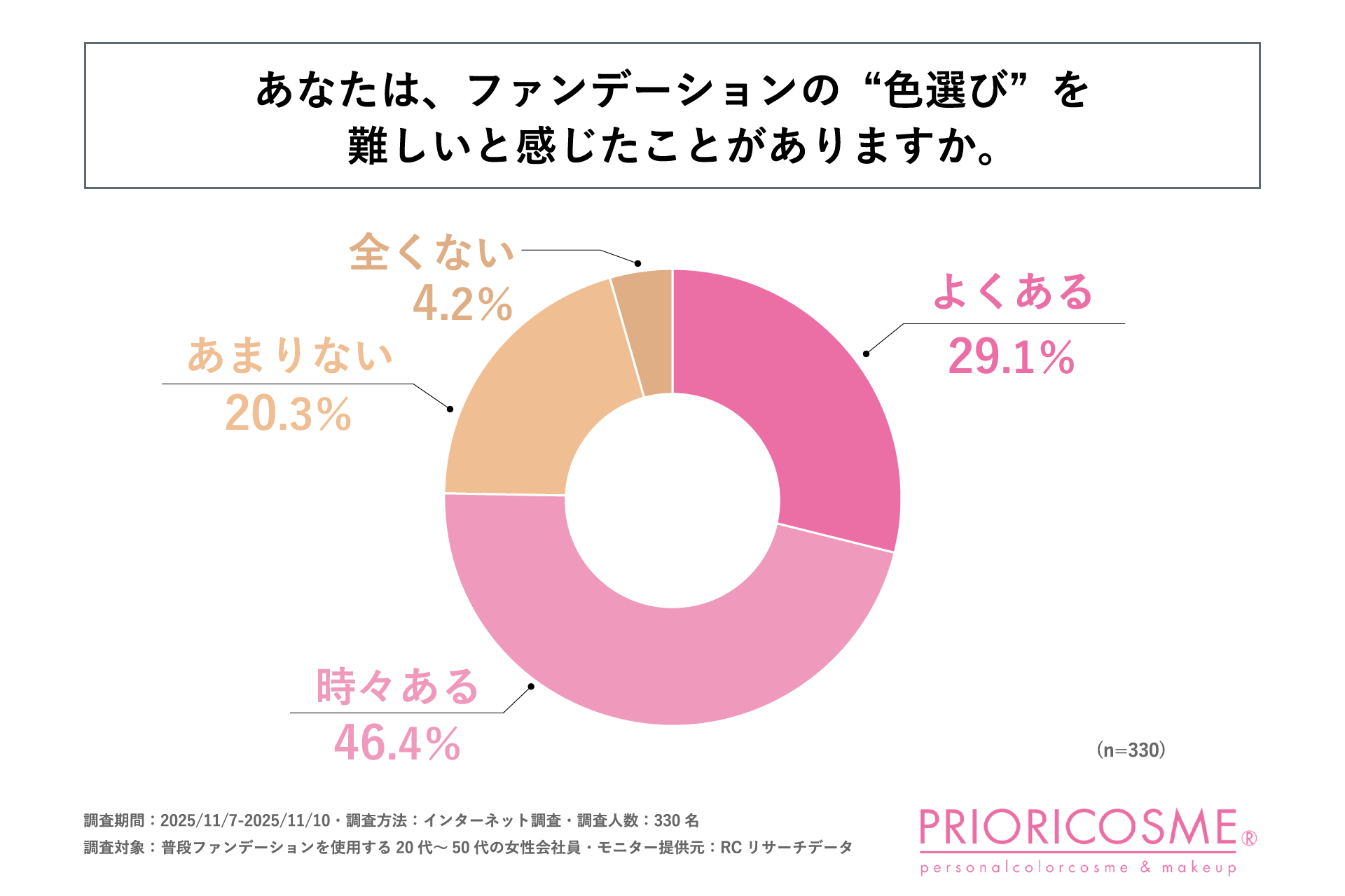 20代~50代の女性会社員の約75%が、ファンデーションの“色選び”を難しいと感じたことがある!プリオリコスメが「働く女性のベースメイク悩みに関する調査」を実施!
