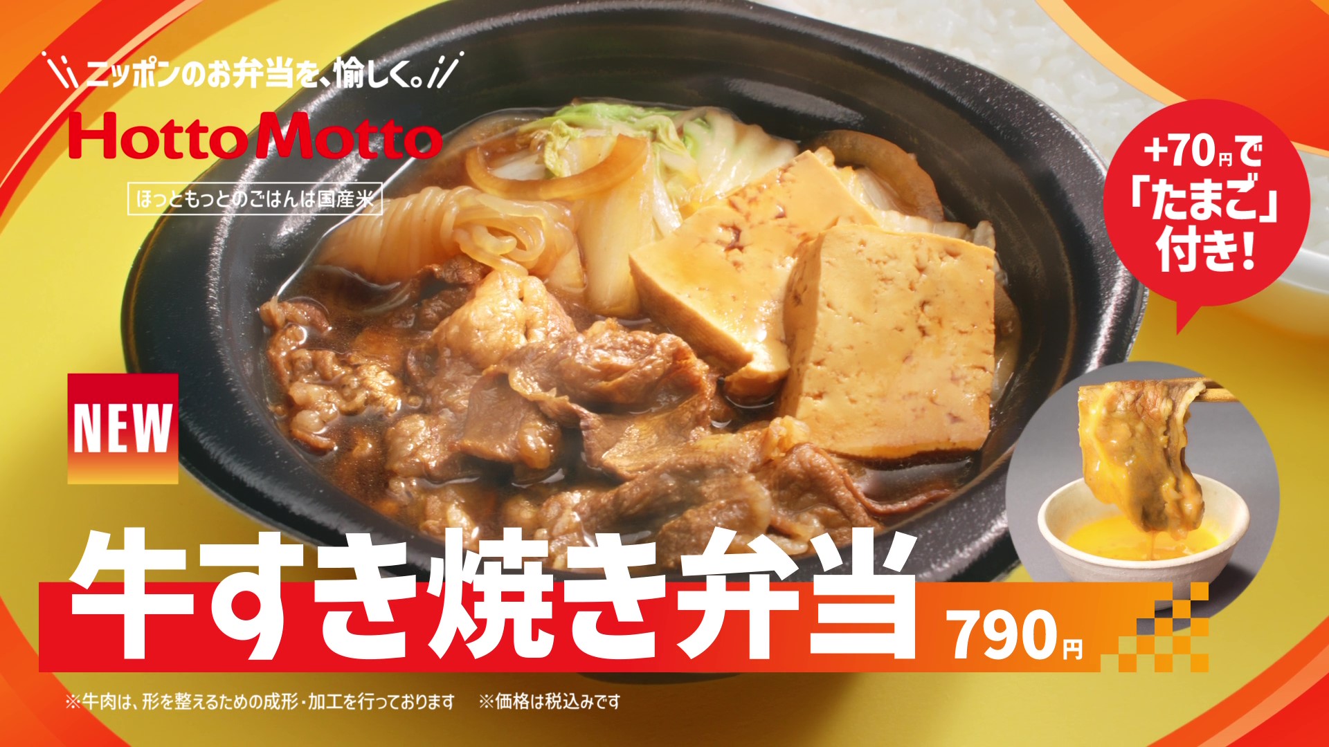 「ほっともっと」新TVCM公開!『ザ・すき焼き!牛すき焼き弁当&豚汁CP』篇