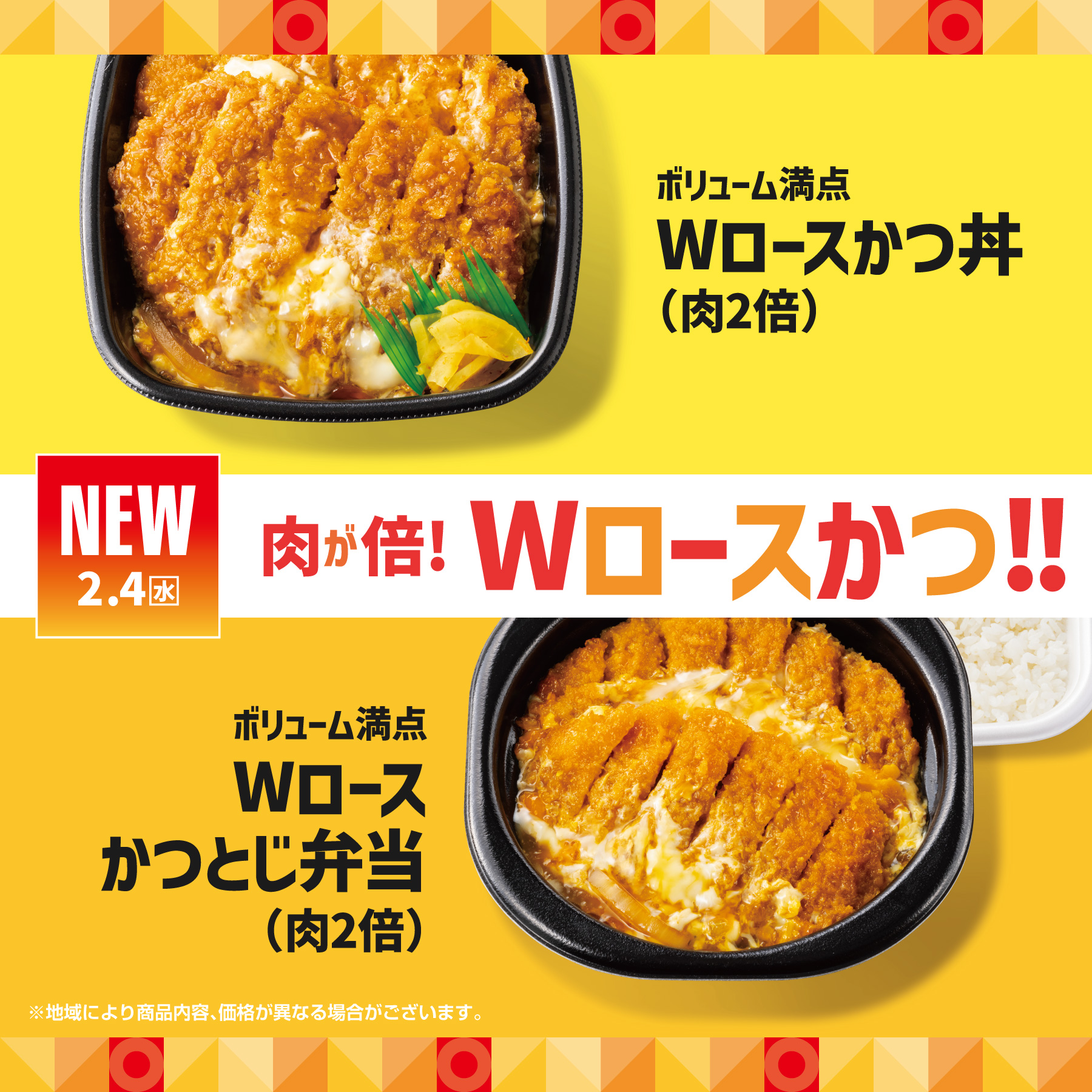 「ほっともっと」定番メニューに仲間入り!『Wロースかつ丼(肉2倍)』『Wロースかつとじ弁当(肉2倍)』『白身フライ&チキンBOX』発売