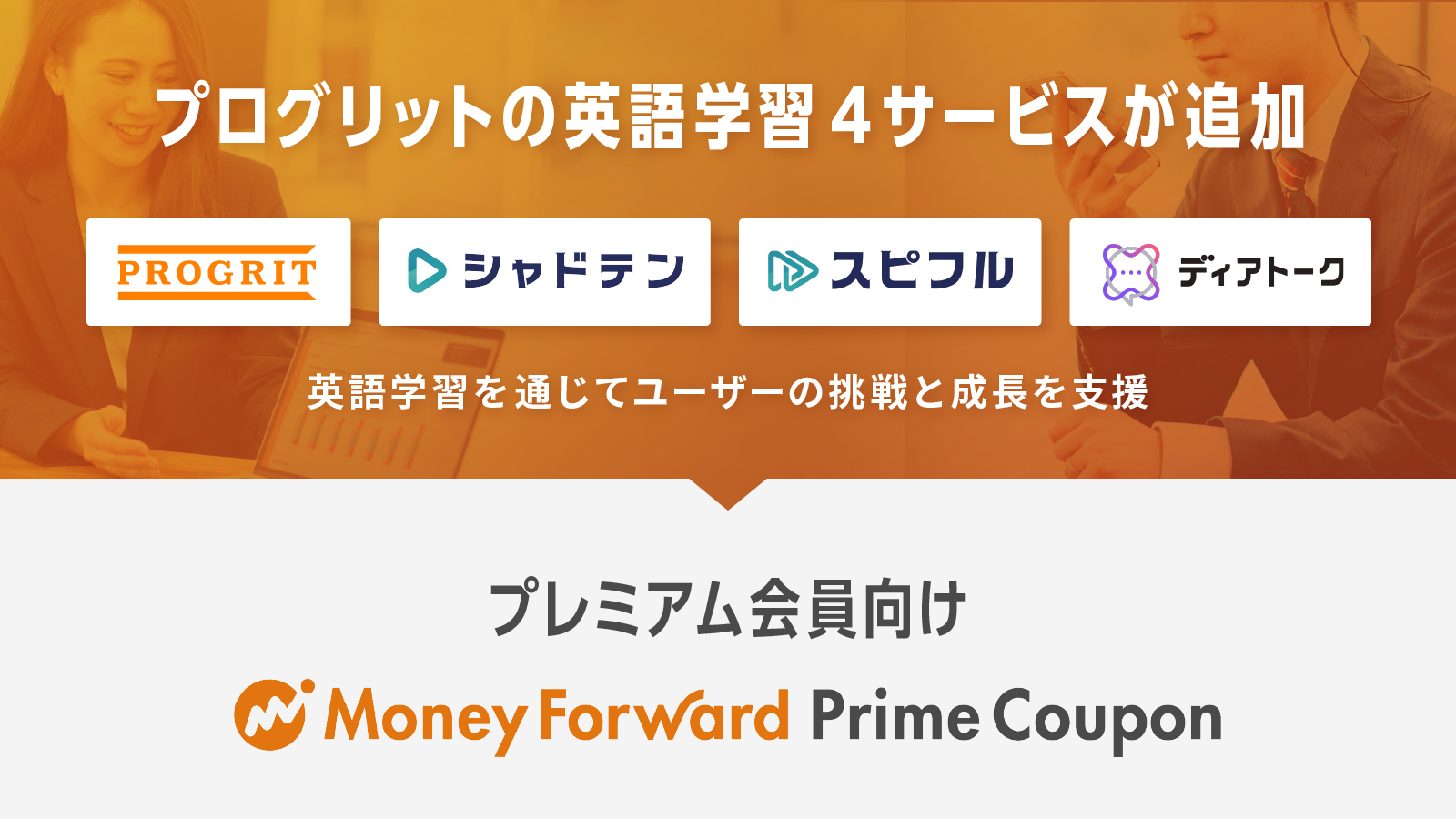 マネーフォワードME プレミアム会員向け「Prime Coupon」に、プログリットの英語学習サービスが追加