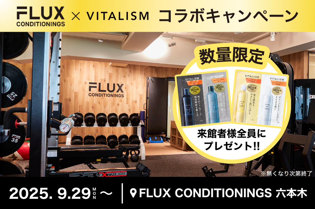 ジム・サウナ後のケアを、より上質に。FLUX CONDITIONINGS 六本木店にてコラボキャンペーンを開催!ご利用者様にVITALISMのトライアルパウチをプレゼント!