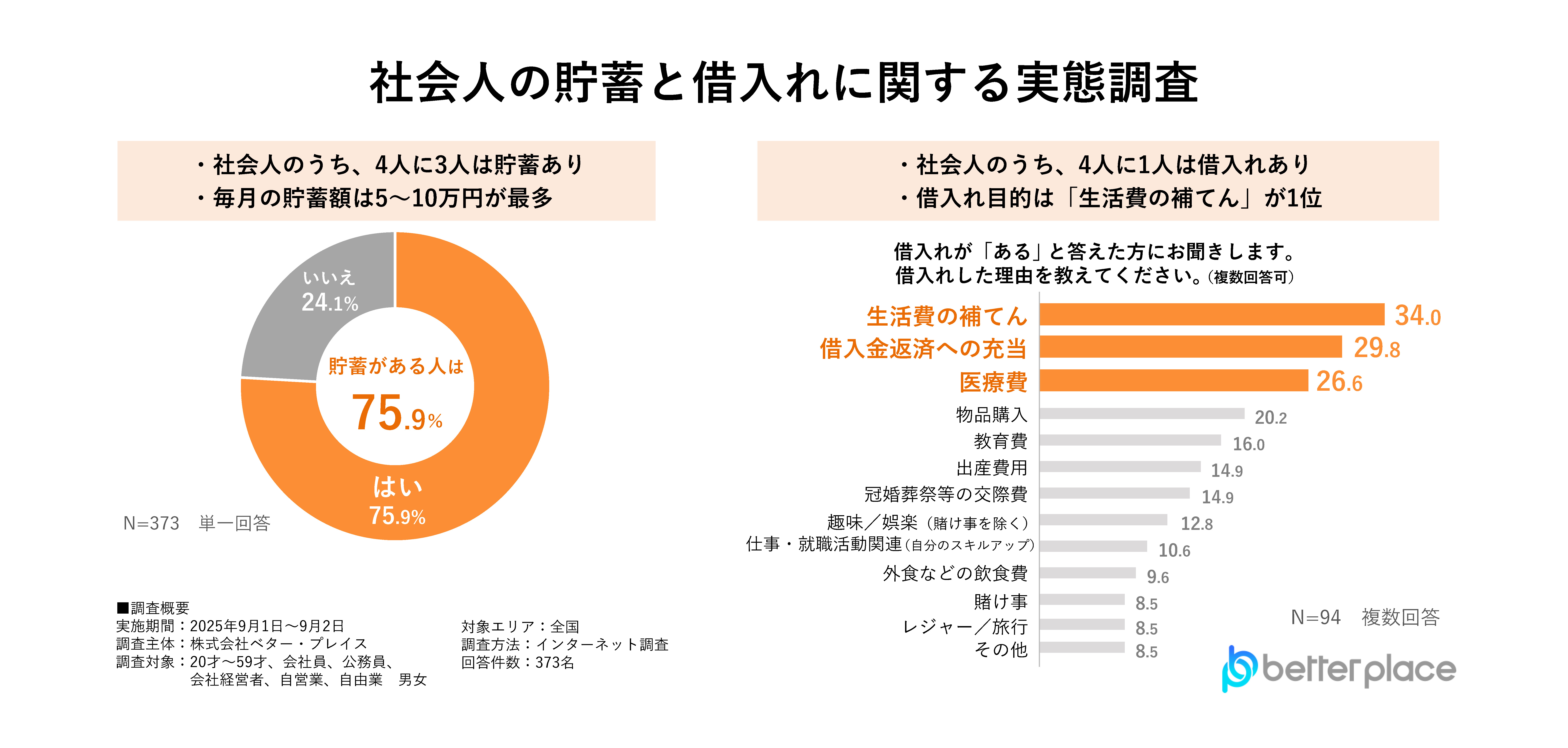 【10月17日は「貯蓄の日」 貯蓄と借入れに関するアンケート調査結果】4人に3人は貯蓄あり、毎月の平均貯蓄額は5~10万円が最多。4人に1人は借入れありと回答