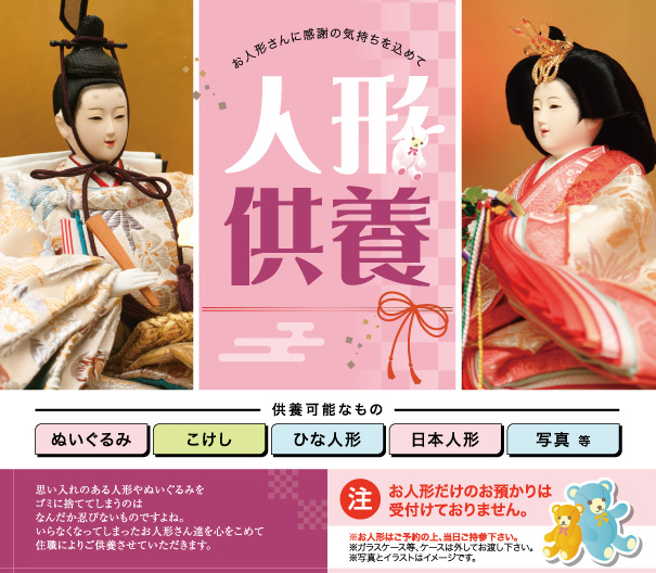 「ひな祭り後の思い出の人形に感謝を込めて供養」心を込めて感謝を届ける「人形供養祭」開催のお知らせ
